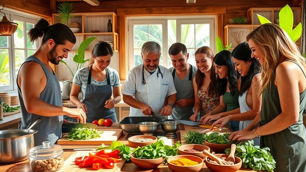 Taking local cooking classes while you travel offers an immersive way to experience a destination’s culture. You’ll gain hands-on skills, learn about regional ingredients, and understand culinary traditions passed down through generations. These classes foster connections with locals and fellow travelers, making your trip more memorable. By engaging directly with food, you’ll develop a deeper appreciation for the cuisine and build confidence to cook these dishes back home. Keep exploring to discover how this can transform your travel adventures.
