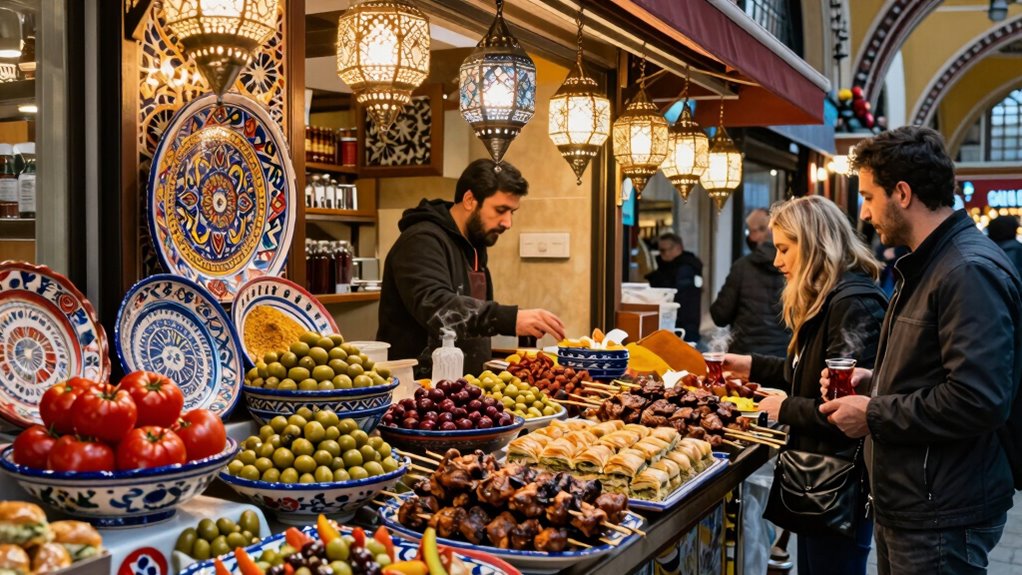 Stepping into Istanbul’s Grand Bazaar is more than just shopping; it’s an opportunity to savor authentic flavors that locals cherish. As you wander through the labyrinth of stalls, your senses are instantly awakened by the vibrant aromas and colorful displays. One of the most iconic treats you’ll encounter is Turkish delights, small cubes of chewy, sweet confections dusted with powdered sugar or rolled in nuts. These are not just souvenirs; they’re a taste of Turkish tradition, often enjoyed with a cup of thick Turkish tea. You’ll find vendors expertly offering samples, inviting you to indulge in these sugary jewels that have been part of Turkish culture for centuries.