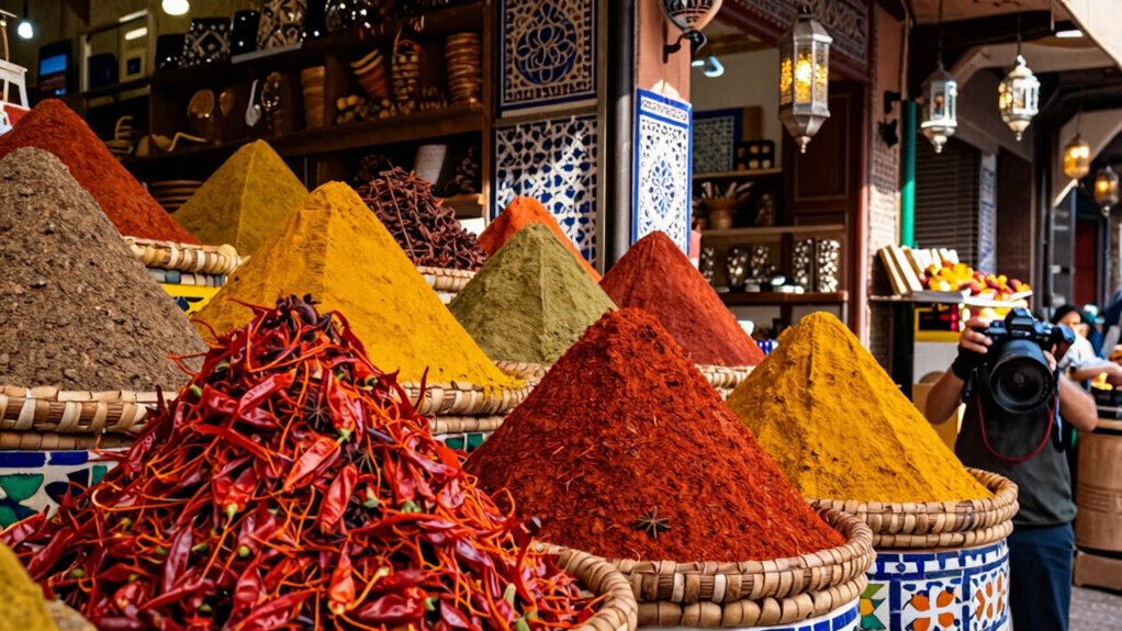 As you wander through Marrakech’s bustling markets, the vibrant colors and intoxicating aromas wrap around you like a warm embrace. The scent of fragrant spices, the chatter of merchants, and the swirl of vivid textiles create a tapestry of sensory delight. You leave feeling enriched, your senses alive with the magic of this lively marketplace. Marrakech’s soul lingers in your heart, a vivid memory etched with the fiery hues of its spice odyssey.