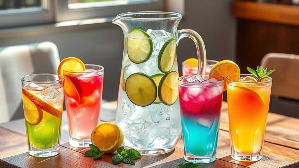 Sports drinks aren’t necessary for everyday hydration if you’re just doing normal activities. Instead, you can stay well-hydrated with water, fruit infusions, and tracking your intake using hydration apps. These options provide essential electrolytes and fluids without added sugars. Save sports drinks for intense exercise or dehydration situations. Focus on drinking enough water throughout the day, and you’ll keep your hydration levels balanced and healthy.