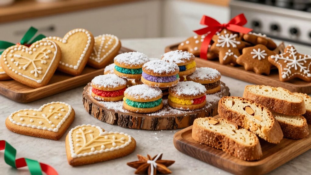 Imagine a world where sugar alternatives and allergen considerations unite to create sweet harmony. You’ll find common ingredients like sugar, flour, eggs, and butter in holiday treats worldwide. Spices like cinnamon and nutmeg add warmth, while nuts and dried fruits bring richness. You adapt recipes to meet dietary needs by using sugar substitutes and allergen-friendly options, ensuring everyone can enjoy the festive joy. These ingredients connect us all in celebration.