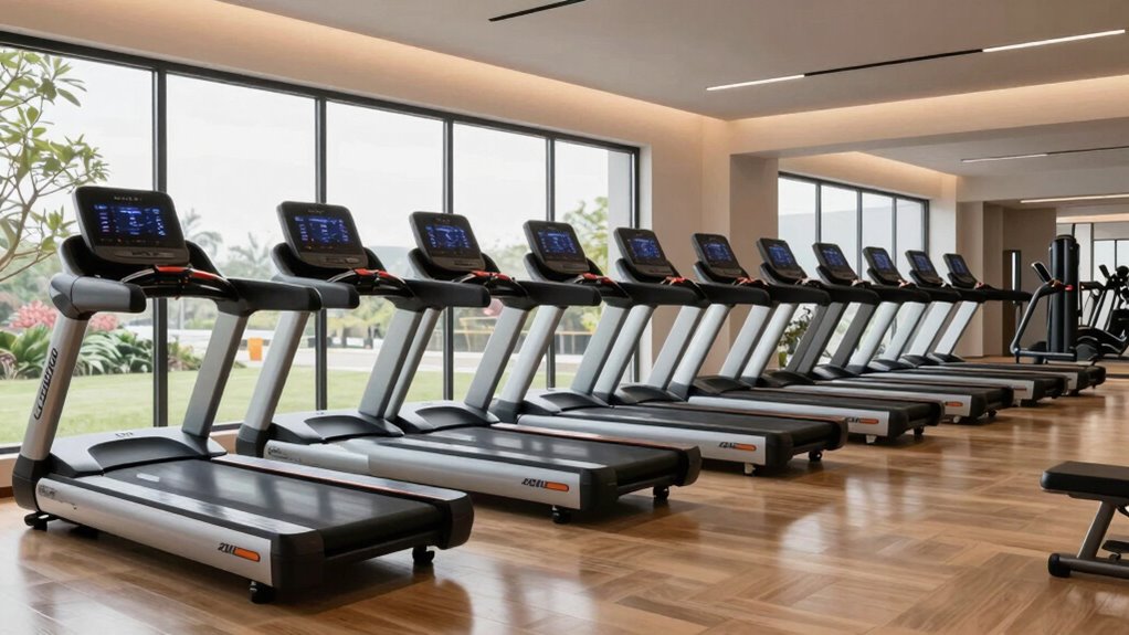 Did you know that over 80% of treadmill accidents involve slips or falls? Safety features vary quite a bit between brands. Some offer automatic shut-off when the belt’s speed exceeds a certain limit, while others include safety keys or emergency stop buttons. I’ve found that models with thorough safety features give me peace of mind. Always check for sturdy handrails and clear instructions to guarantee your workout remains safe and enjoyable.