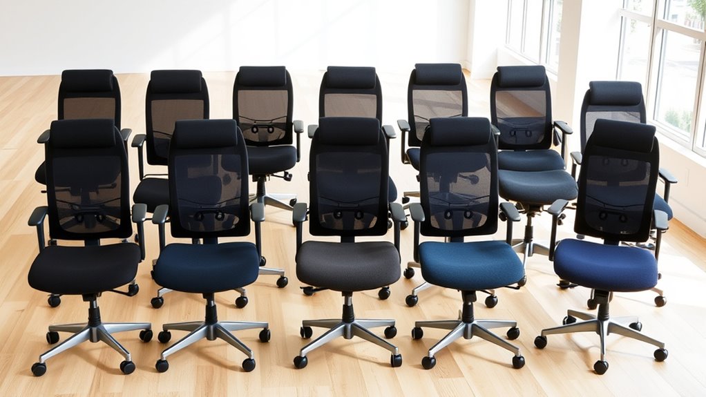 To find the best size for your body type, I recommend measuring your height, weight, and the length of your thighs and torso. Look for chairs with adjustable features like seat height, lumbar support, and armrests to customize fit. When trying out chairs, sit comfortably and make certain your feet are flat on the ground, your knees are at a 90-degree angle, and your back is fully supported.