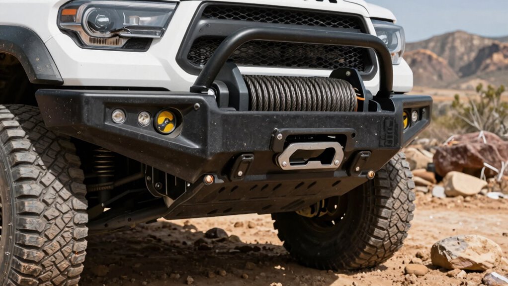 Think of your winch as the beating heart of off-road adventures. I always keep mine clean and dry, wiping off mud and dirt after every trip. I check the cable for frays and lubricate moving parts regularly to prevent rust. Testing the winch periodically guarantees it’s ready to work when needed. Proper maintenance keeps it reliable, so your adventures stay safe and smooth, no matter how tough the terrain.