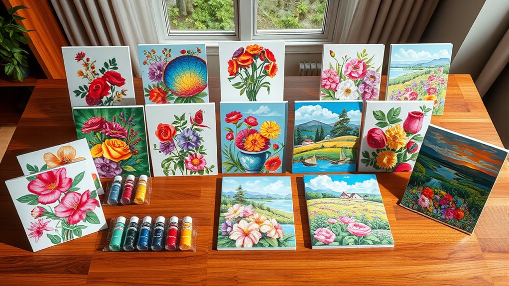 If you’re looking for the best paint-by-numbers kits to spark your creativity, I’ve found some great options for adults that combine quality, variety, and fun. From floral designs to scenic landscapes and moon themes, these kits come with durable canvases, vibrant paints, and easy instructions. They’re perfect for relaxing, honing your skills, or creating beautiful decor. Keep exploring, and you’ll discover the perfect kit to inspire your artistic side.