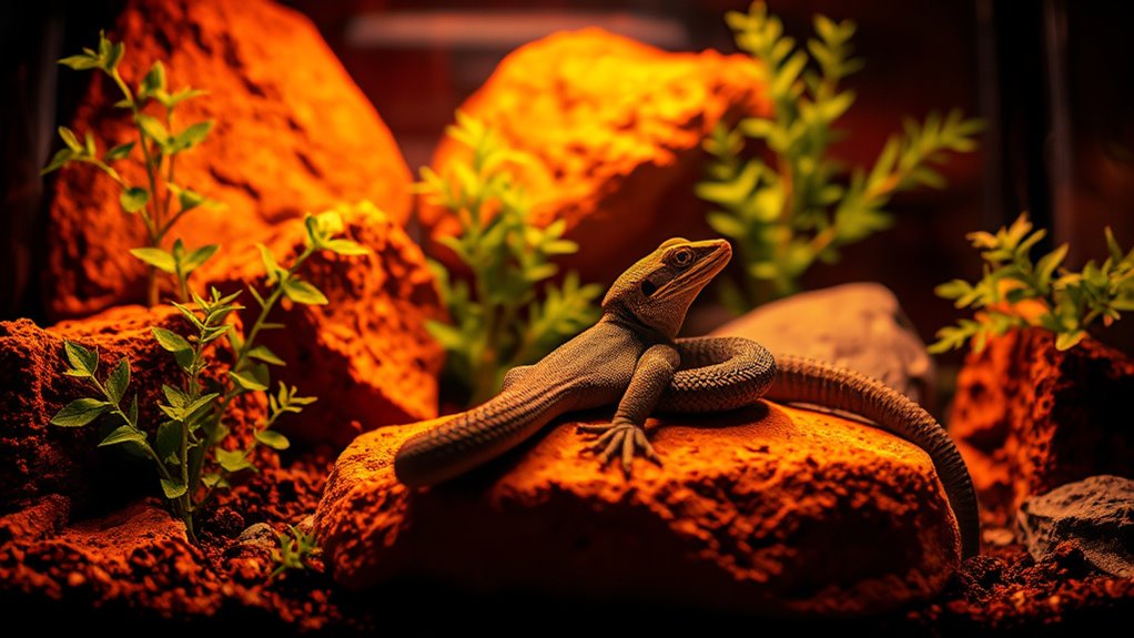 If your reptile is overheating, you’ll notice rapid breathing, excessive sweating, or panting, and they might try to escape the heat source. Underheating shows up as lethargy, lack of appetite, or curling up to conserve warmth. I always keep a close eye on their behavior and use a thermometer to monitor their habitat’s temperature, adjusting the heat source as needed to keep them comfortable and healthy.