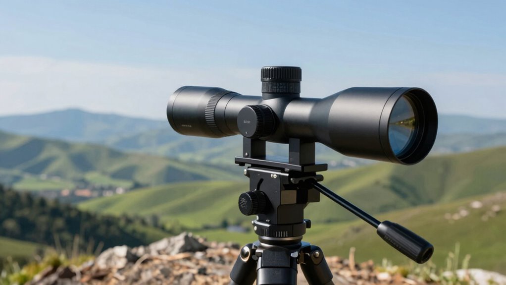 You’ll want a magnification range between 20x and 60x for long-distance shooting—anything less feels like trying to see a needle in a haystack! This range lets me spot tiny targets at incredible distances with sharp clarity and detail. Higher magnifications can be tempting, but I find they’re often unstable and harder to use. So, I stick with 20x to 60x for the perfect balance of power and stability.