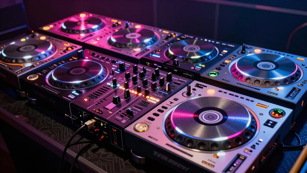 If you’re looking for turntables that seamlessly integrate with digital DJ software, I recommend models like the Pioneer DJ PLX-1000 or the Rane Twelve. These turntables offer USB connectivity and advanced control features, making it easy to sync with software like Serato or Rekordbox. I find that their reliable performance and compatibility help me mix smoothly, whether I’m spinning vinyl or digital tracks.