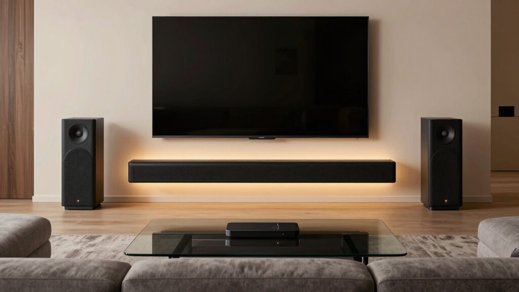 Ever wondered how to make your wireless home audio system truly yours? Customization options are key. Look for systems with a variety of EQ presets like Bass, Pop, Classical, and Rock to easily tailor sound profiles. Advanced app control is essential, allowing you to fine-tune bass, treble, midrange, and surround settings right from your phone. Features like multiple sound modes—Movie, Music, Voice, Night—offer quick adjustments for different scenarios. A multi-band or 10-band equalizer provides precise control over specific frequency ranges, giving you the ability to craft your perfect sound. Additionally, OTA updates ensure your system stays current, providing new presets and improvements over time without hassle. These features let you truly customize your listening experience to match your preferences.